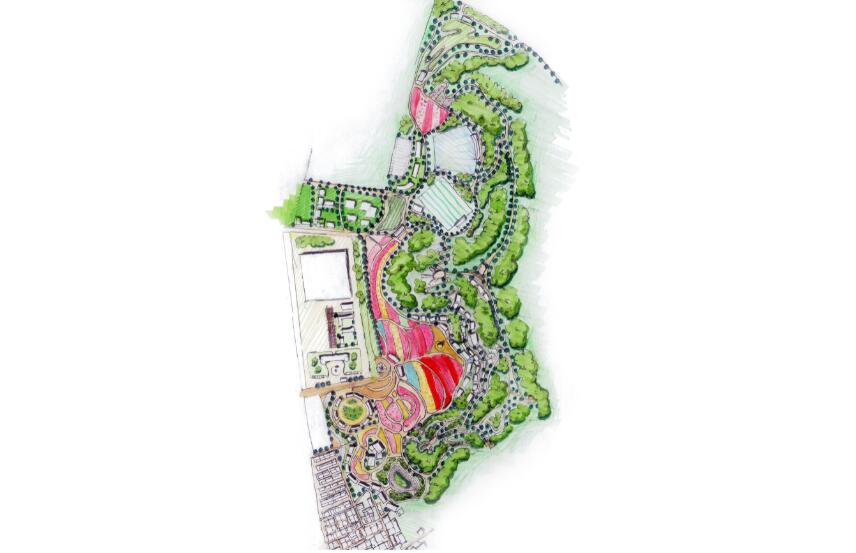 通過對入口軸線上的商業(yè)建筑、樂園設(shè)施和景觀設(shè)計,加入蘊含田園元素的雕塑小品,豐富感官體驗。圍繞對主軸線的項目布局,打造出浪漫唯美的景觀環(huán)境,依次將民宿度假、仙子樂園、荷蘭商街、十里玫園、百花園、樂玩果園、生態(tài)果園等串聯(lián)起來。通過以玫瑰塔為中心,周邊種植世界著名的玫瑰品種,園內(nèi)設(shè)有特色景觀和小品打造出浪漫的景觀節(jié)點。