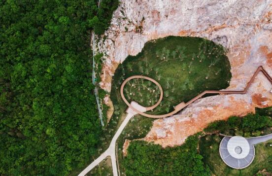 位于湯山國家旅游度假區(qū)內(nèi)湯山山體南側(cè),是一座廢棄的采石場(chǎng)礦坑,宕口遠(yuǎn)看傷痕累累,走進(jìn)卻氣勢(shì)恢宏——植物已經(jīng)悄然的從破碎的石縫中慢慢長出,與冷峻的石壁搭配成漂亮的肌理;巨大的采石場(chǎng)的尺度讓人覺得不可觸、不可及,但是熱血沸騰。